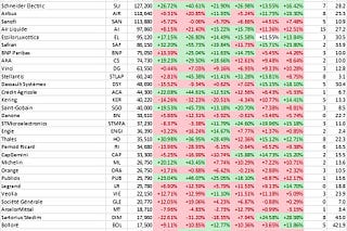 Suite des données sur la performance totale des actions de l’ensemble de la cote française, par rapport à un ETF Monde (CW8), puis nous allons ensuite…
